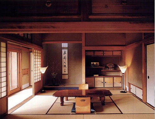 Không gian phòng khách rộng và thoáng, được bao phủ trên nền là một tấm thảm gọi là tatami, người ta không sử dụng ghế trên thảm tatami mà ngồi trực tiếp trên tatami hoặc đệm phẳng gọi là zabuton.