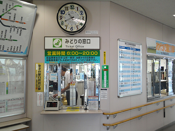 Bán có thể mua vé tại các khu vực "Midori no mado" (みどりの窓口). Khu vực này thường rất đông nên nếu loại vé bạn cần có thể mua bằng máy bán hàng tự động thì nên tận dụng. Cũng có trường hợp có thể mua vé Shinkansen bằng máy bán hàng tự động. Khi mua vé ở “Midori no Mado” bạn phải nói rõ điểm khởi hành, điểm đến; loại tàu (Nozomi, Hikari hay Kodama); số người (trẻ con/người lớn); khoang hút thuốc/không hút thuốc; chỗ ngồi chỉ định/tự do.